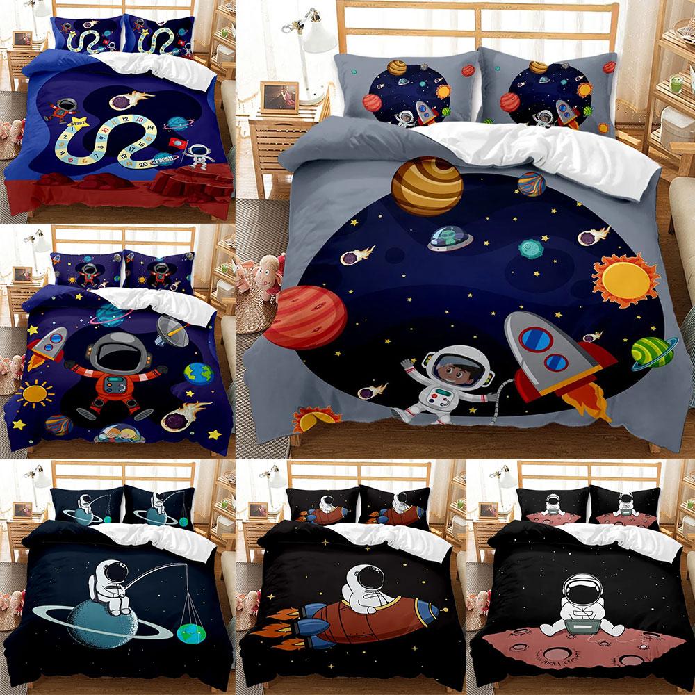 Astronaut Bettwäsche Sets Galaxie Sterne Weltraum Bettbezug Bettdecke Bettbezug Kissenbezug 2-3 Teile Sets Schlafzimmer Dekoration