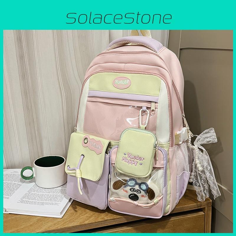 Niedlicher Schulrucksack für Mädchen und Frauen mit farblich abgesetztem Buchstabenmuster