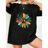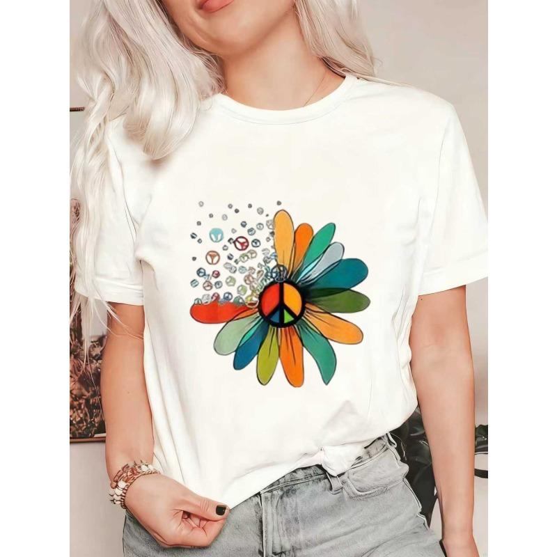 Oversized T Shirt Black Colorful Flower Peace Sign Print Casual Wear For Women Summer Streetwear Fashion Top