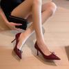 Mode Schleife Stiletto Einzelne Schuhe Herbst Neu Spitzzehen Lackleder Slipper Rutschfest Verschleißfest Hohe Absätze