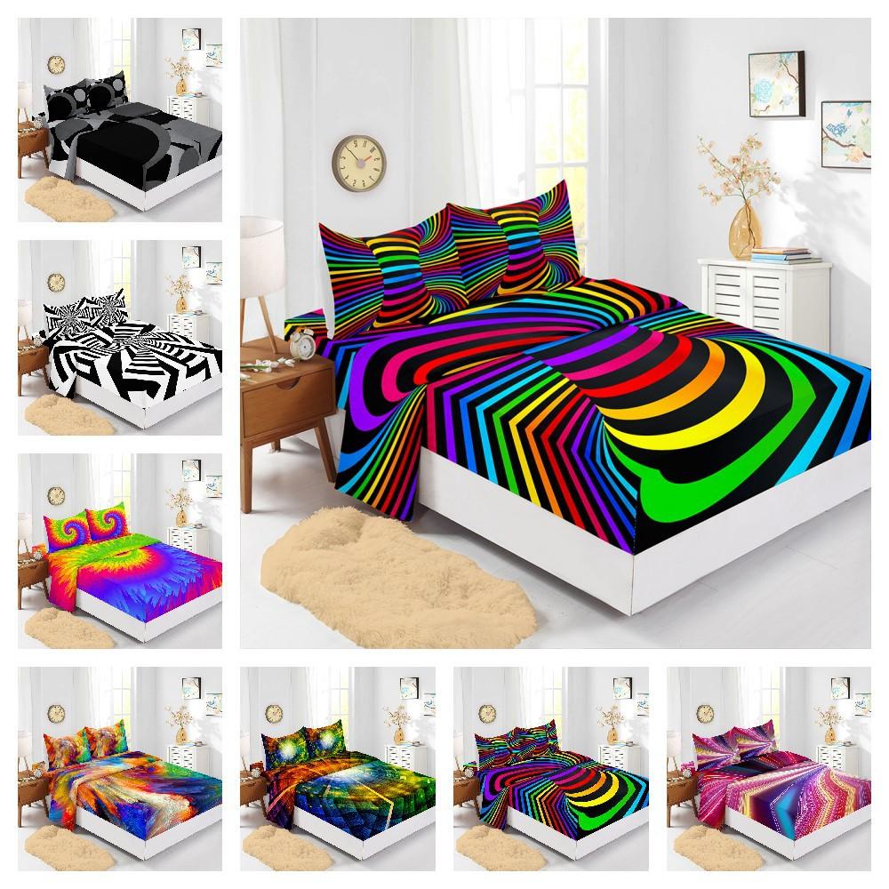 Vierteiliges Matratzenset 3D-Grafikmuster 3D-Digitaldruck-Set Matratzenschutzbezug