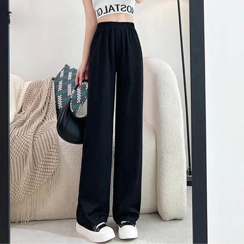 Damen Weitbeinige Loungehose Hohe Taille Gerade Jogginghose Bodenlange Hose