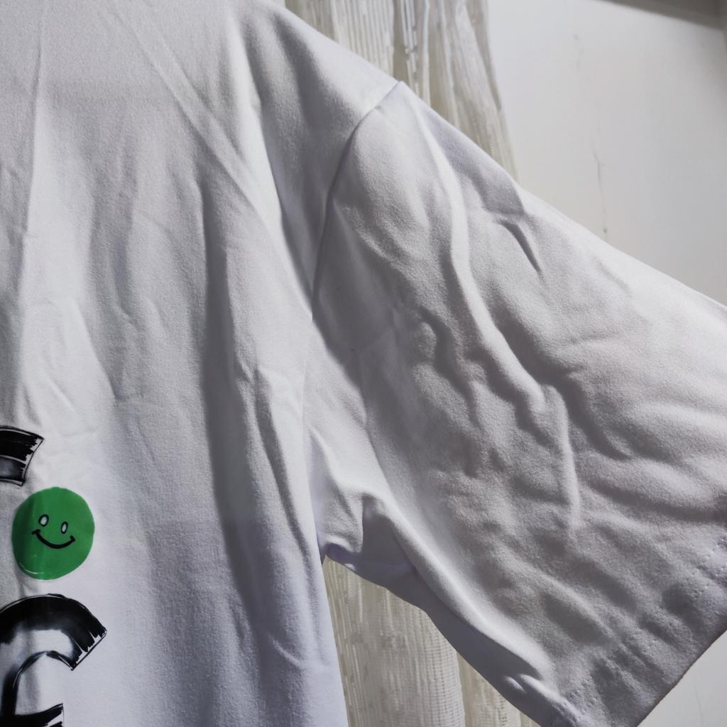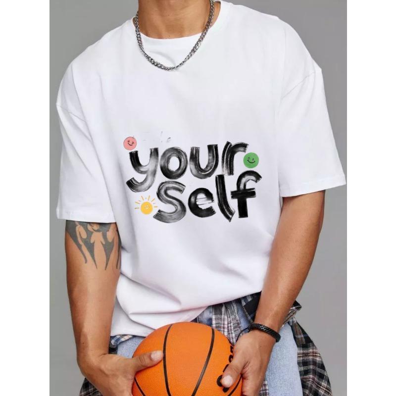 T-Shirt mit Rundhalsausschnitt Weiß Selbst mit Smiley-Gesichtern und Sonnendruck Freizeitkleidung für den täglichen Gebrauch