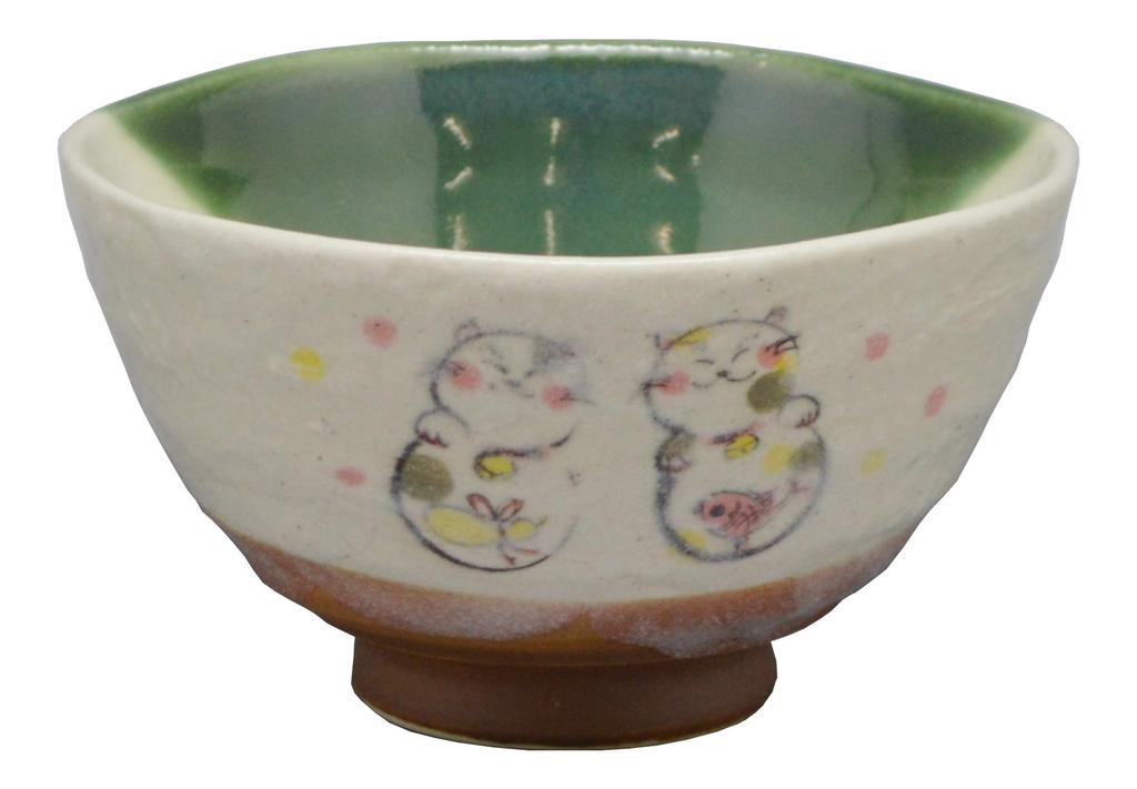 Yutakagama Matcha Schale, Weiß, Größe: Durchmesser 11,6 cm x Höhe 6,7 cm, Rikyu Teeschale, Katzendesign