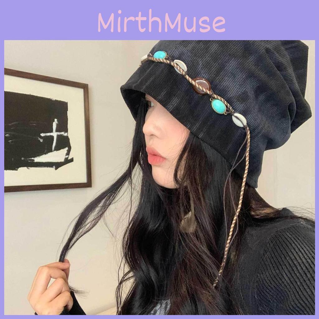 Boho-Hut mit Perlenquasten und Kettenverzierung für Damen, Herbst- und Wintermode