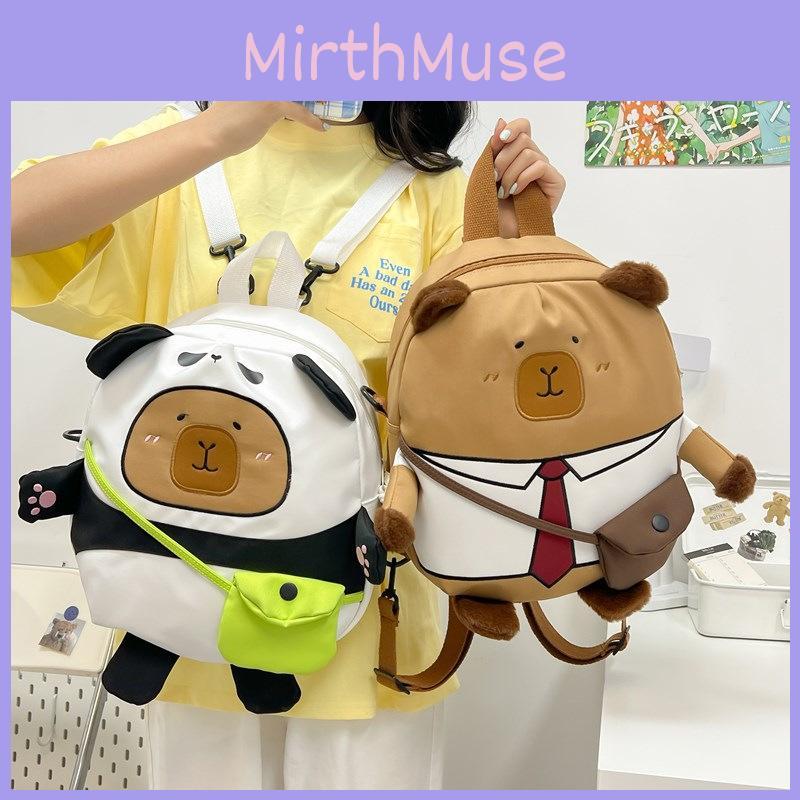 Ins Capybara Panda Cartoon Backpack With Waterresistant Nylon And Multiple Storage Compartments