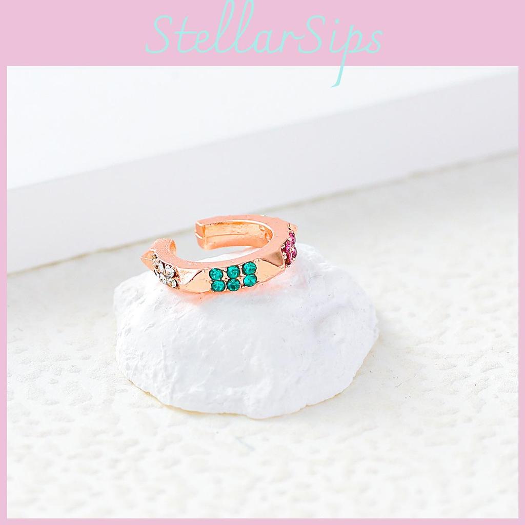 Dazzling Geometric Alloy Ear Cuff With Colorful Stones For Stylish Women