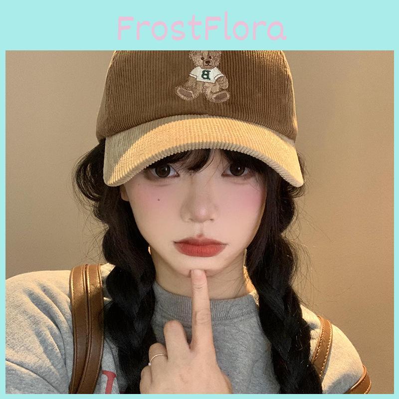 Adorable Corduroy Bear Embroidery Baseball Cap For Women Casual Fall Winter Style