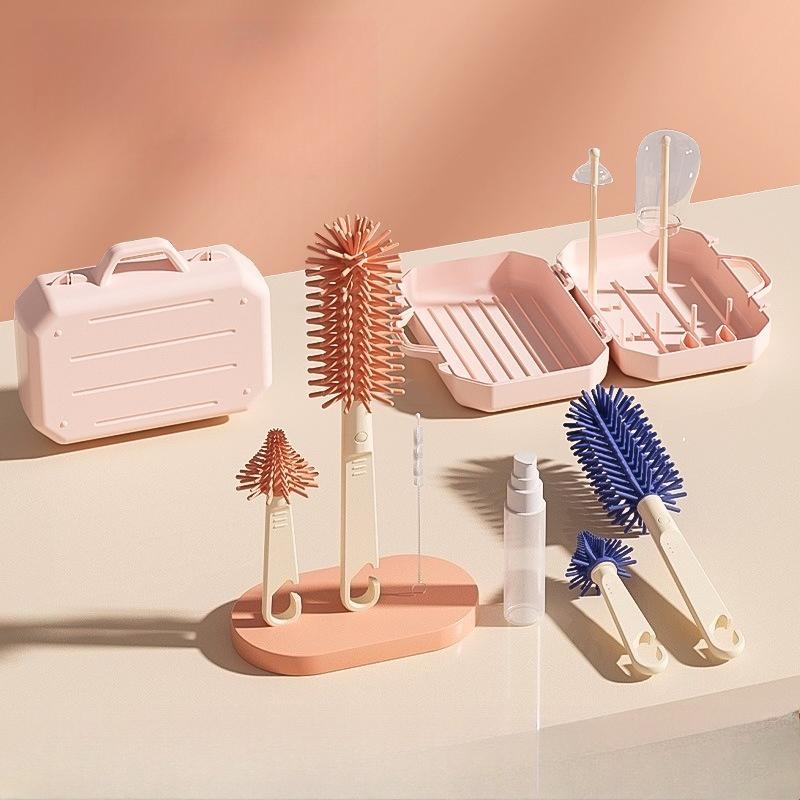 Bottle Drying Rack, Draining Bottle Rack, Nipple Bottle Brush Set, Storage Box, Portable Bottle Drying Rack Set
