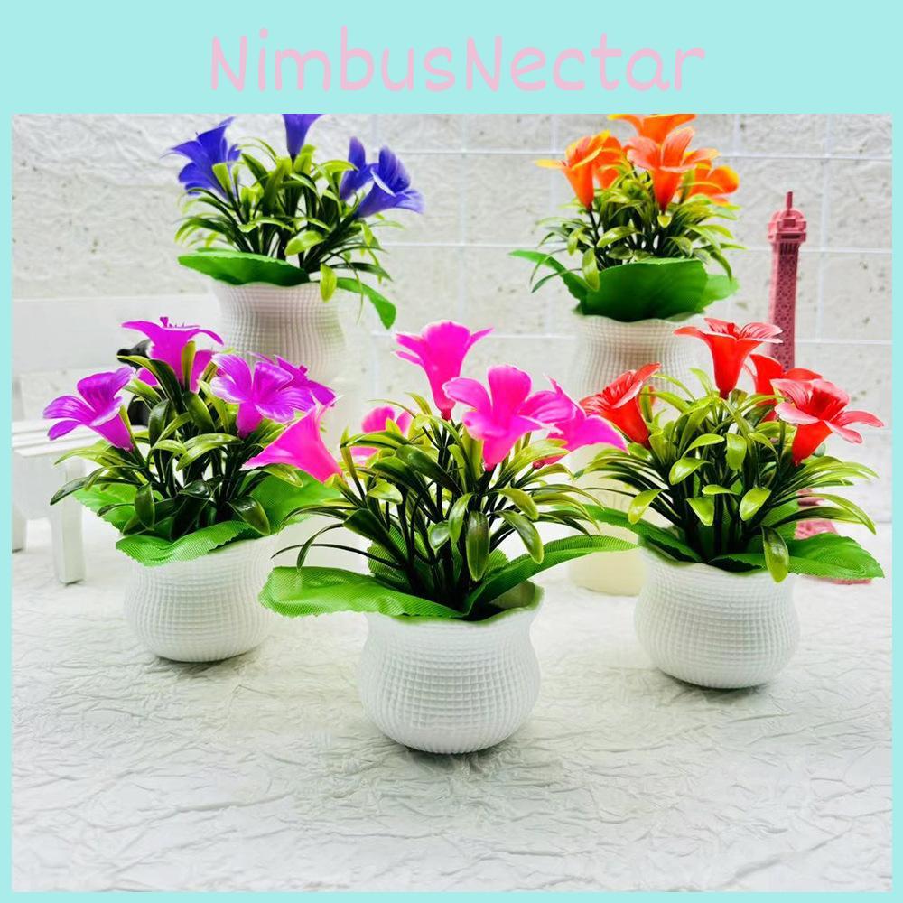 künstliche Lilienpflanze, dekoratives Grün für den Schreibtisch, Büropflanzendekor, künstliches Blumenarrangement, kleine Topflilie, Kunststoffpflanzenornament, farbenfrohe Schreibtischdeko, realistische künstliche Blumen