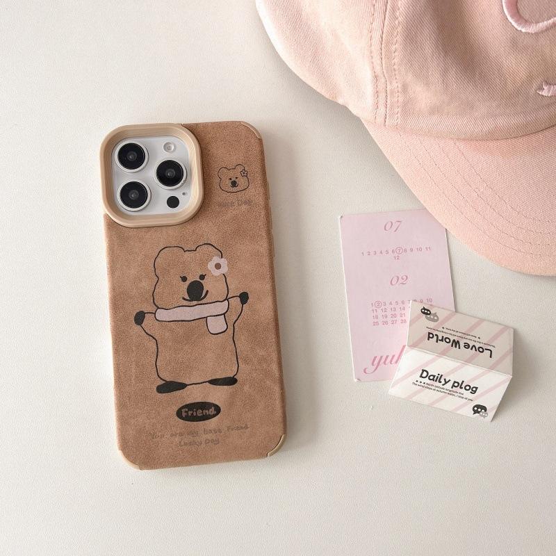 Cute Hug Scarf Bear for IPhone16promax Phone Case for Apple 15 Autumn and Winter Leather Texture 14/XR