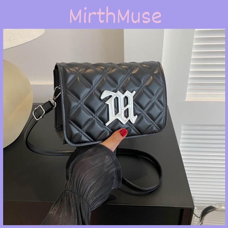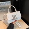 Street Style Womens Small Pu Square Shoulder Bag With Silver Letter Decorated Checkered Texture