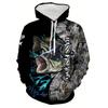 Mode Angeln Musterdruck Kapuzenpullover für Herren Herbst Winter Outdoor Locker Enthusiast Langarm mit Taschen Herren Sweatshirt