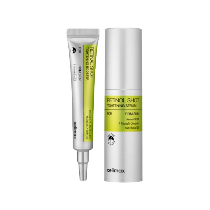 Celimax The Vita-A Retinol Shot Tightening Serum is a high-performance anti-aging serum formulated with 0.1% pure retinol and A-Shot™ micro-technology to visibly firm skin, reduce the appearance of fine lines, improve texture, and tighten enlarged pores. This lightweight, fast-absorbing formula also contains a peptide complex and soothing ingredients to enhance elasticity and hydration while supporting a smoother, more radiant complexion.