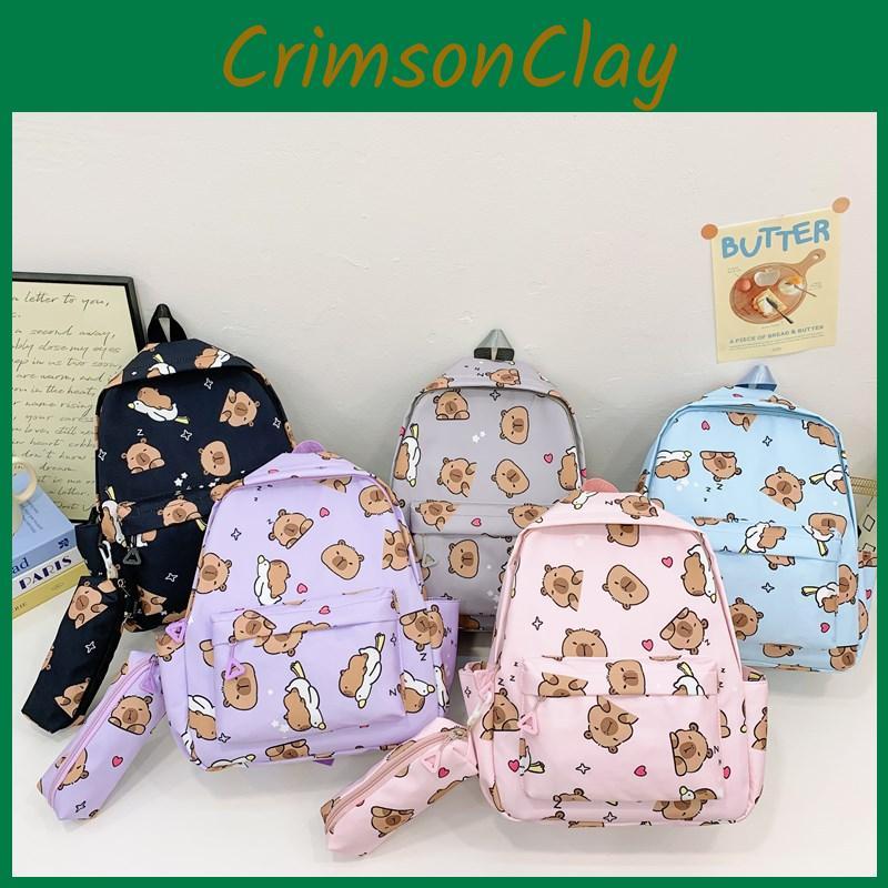 Colorful Capybara Children's Backpack With Pencil Pouch Stylish And Practical For School