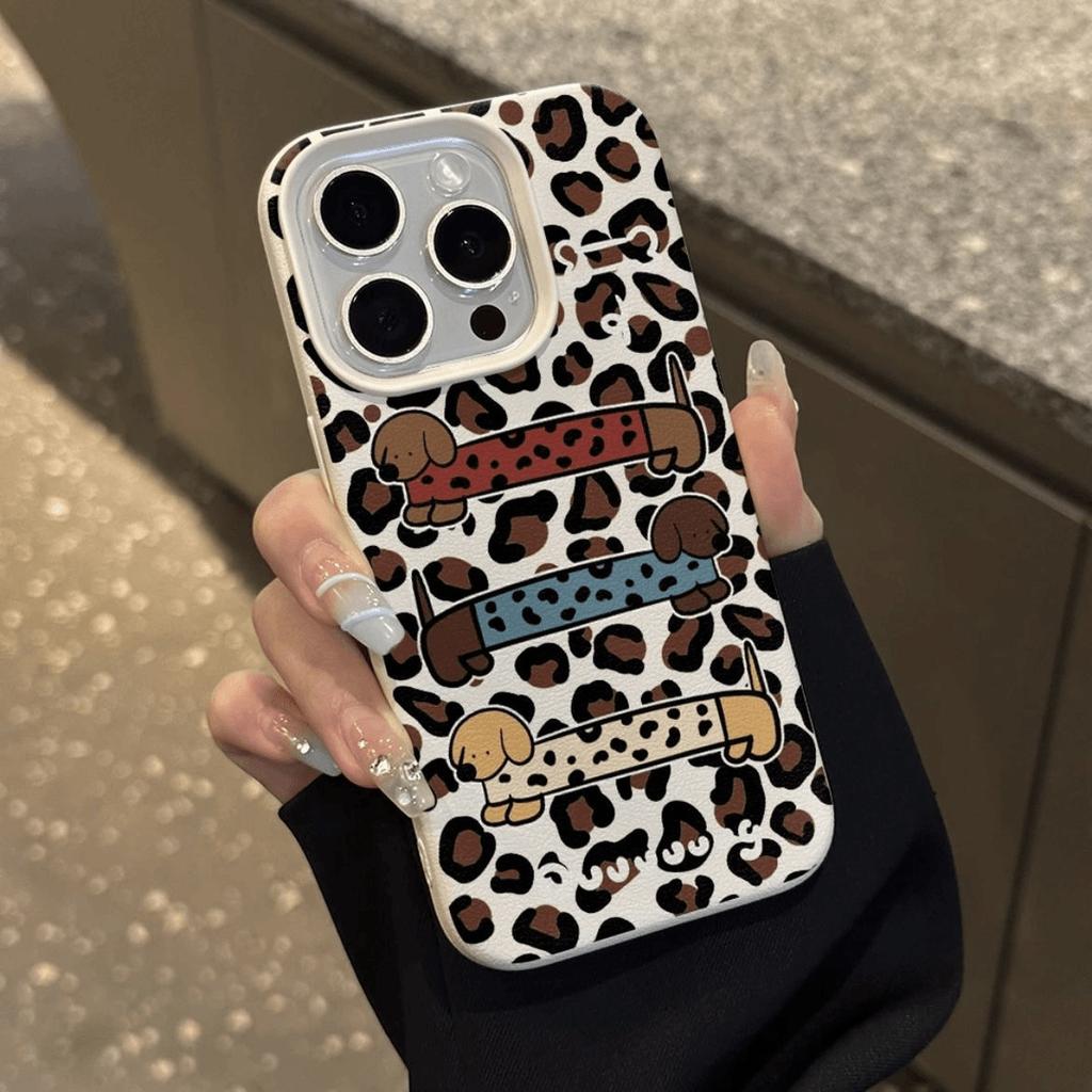 Leopard Print Dachshund for Apple 16PROMAX Phone Case for IPhone14 Creative 13 Anti-fall 12 Soft Shell 11