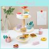 This wooden multi-layer dessert stand supports imaginative play by simulating a three-tier cake tower, ideal for early childhood education. Crafted from durable wood, it measures approximately 10 inches tall with a 7-inch diameter base, promoting fine motor skills, hand-eye coordination, and interactive learning. Suitable for children of all ages, it encourages creative role-playing during indoor activities or pretend tea parties. Easy to clean with a damp cloth, this versatile toy fosters interest cultivation and family bonding.