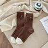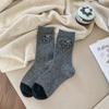 Herbst und Winter Welpen Grau Serie Kontrastfarben Mid-Calf Warme Wolle Damen Socken Cartoon Niedlich Schulstil Bequem