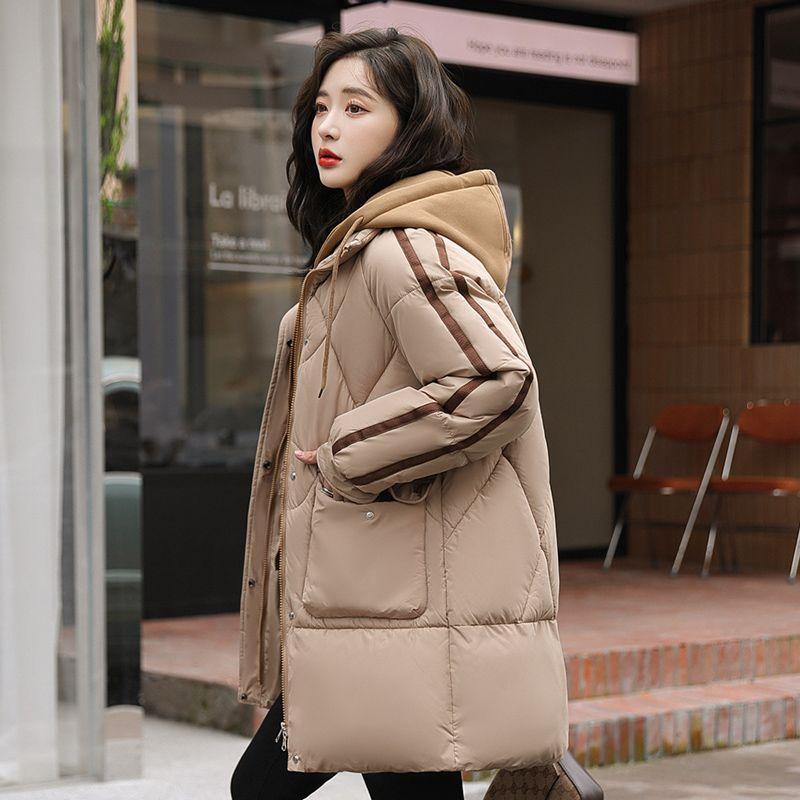 Coat for Women Winter Fleece Thickened Plush Faux Two-Piece Hooded Windbreaker Waterproof Casual Down Jacket
