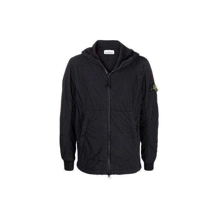 Stone Island Solid Color Logo Pocket Hooded Long Sleeve Jacket Men jackets Black 751541928-V0029