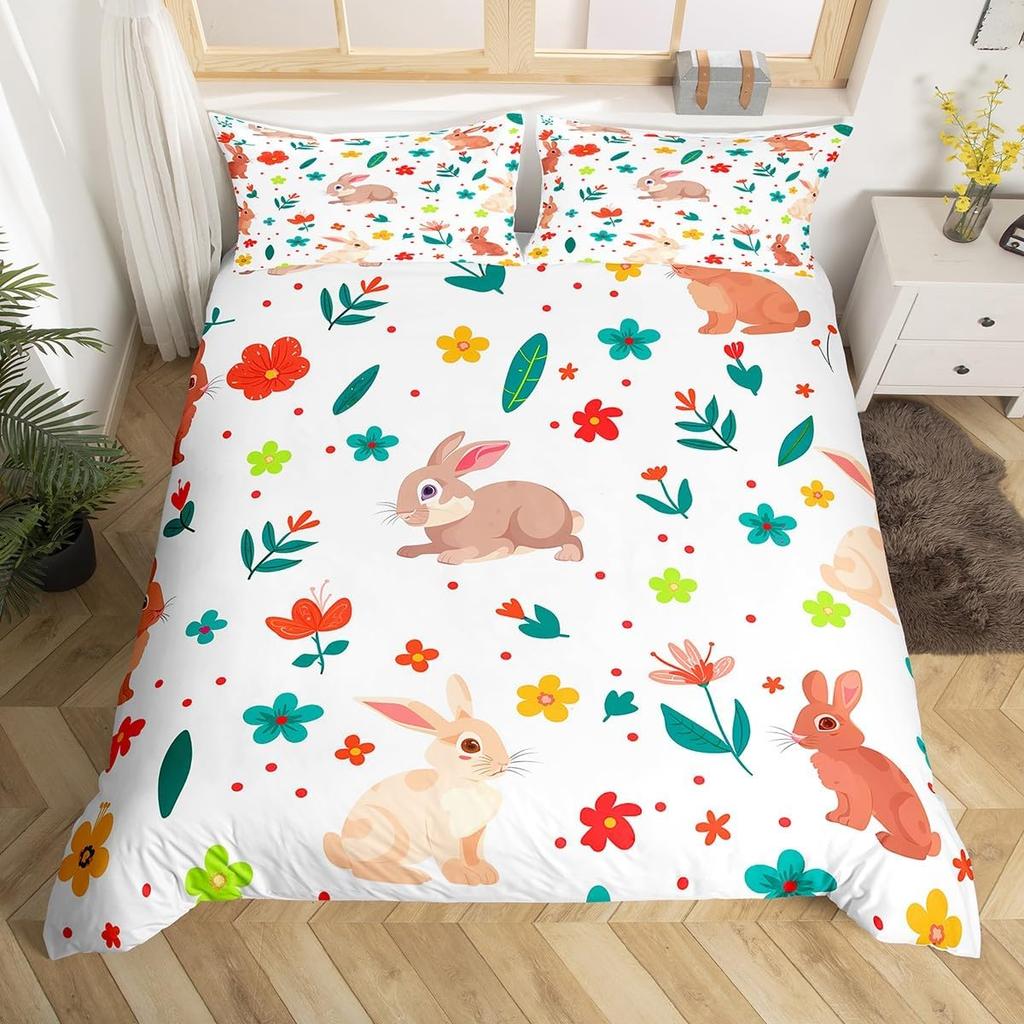 Tier Cartoon King Size Bettbezug Niedliches Regenbogen Alpaka Weiches Bettwäscheset für Jungen Mädchen Floral Dschungel Tier Bettwäsche 3-teilig