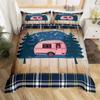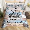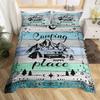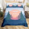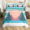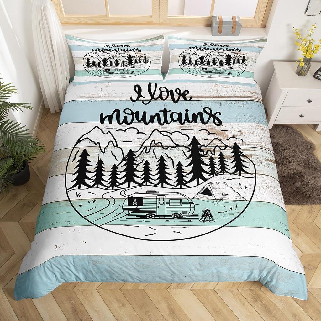 Handbemalte Bergdeko Bettbezug-Set Queen King Size Happy Camping Kinderbettwäsche für Jungen Mädchen 3-teilig mit 2 Kissenbezügen