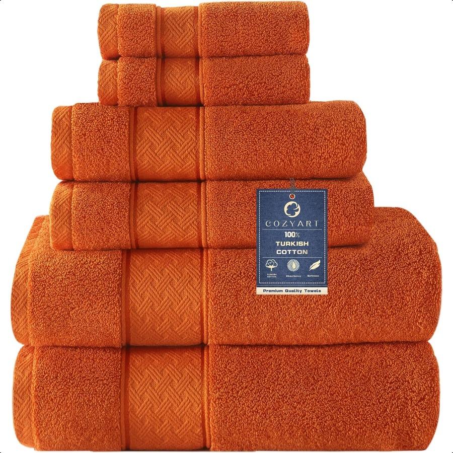 Orange Bath Towel Set 6 Piece 2 Bath Towels 2 Hand Towels 2 Washcloths Luxury 100 Turkish Cotton 650GSM Hotel Quality Soft Abso