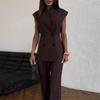 2025 Sommer Damen Doppelreiher Weste und Hose mit hoher Taille Set