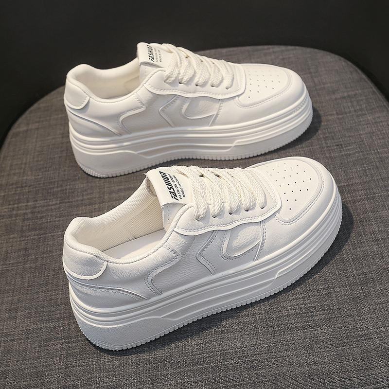 Leder kleine weiße Schuhe Damen Frühling neu vielseitig Muffin dicke Sohle erhöhend Damenschuhe lässige Sport-Board-Schuhe