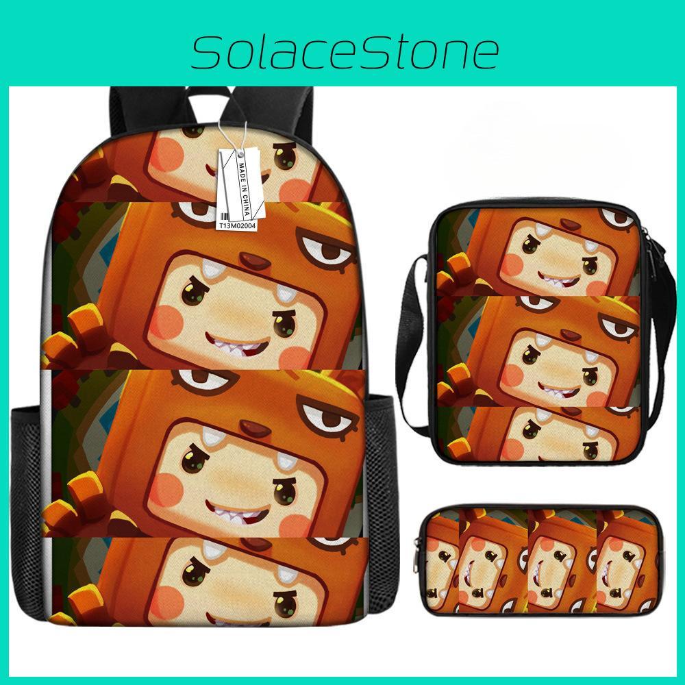 Mini World Kids 3piece Backpack Set Breathable Oxford Polyester For School Students