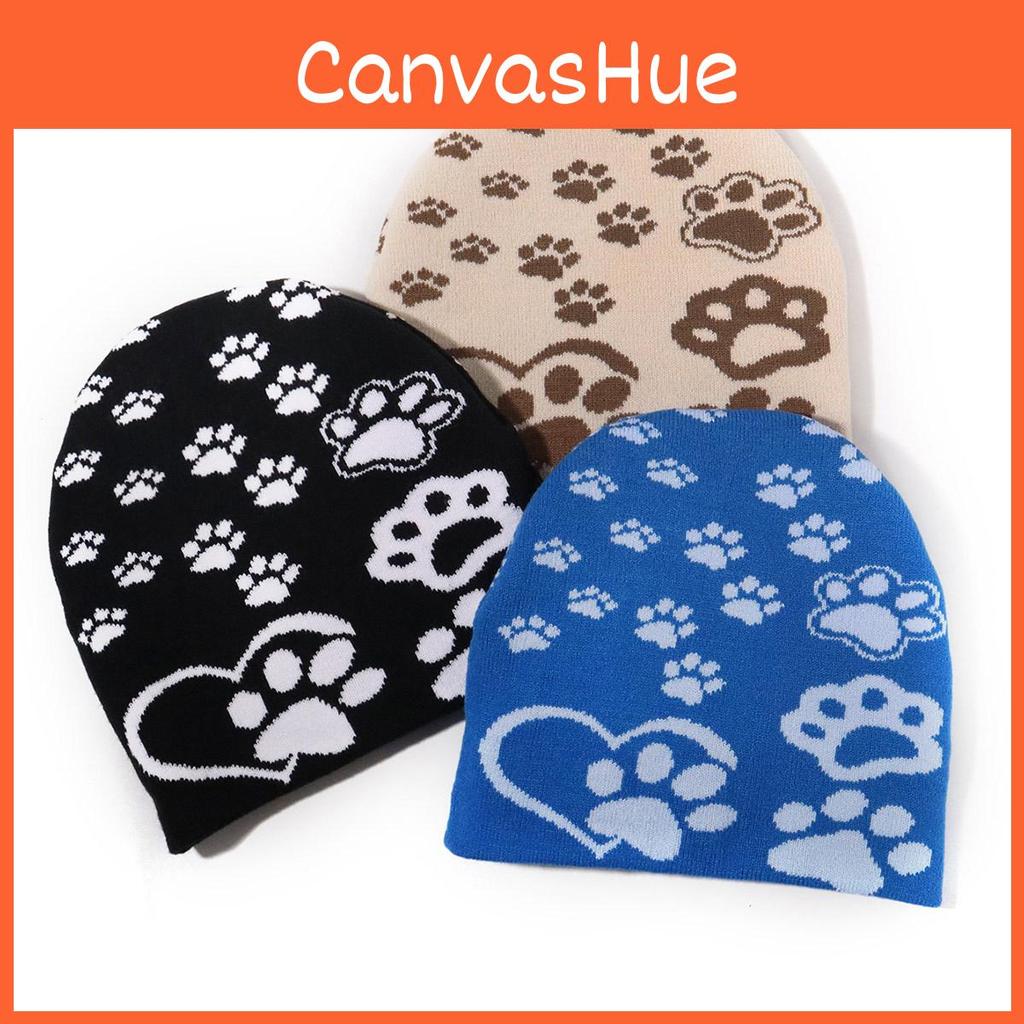 Minimalist Knit Hat With Paw Pattern For Autumn Winter Outdoor Warmth And Everyday Style
