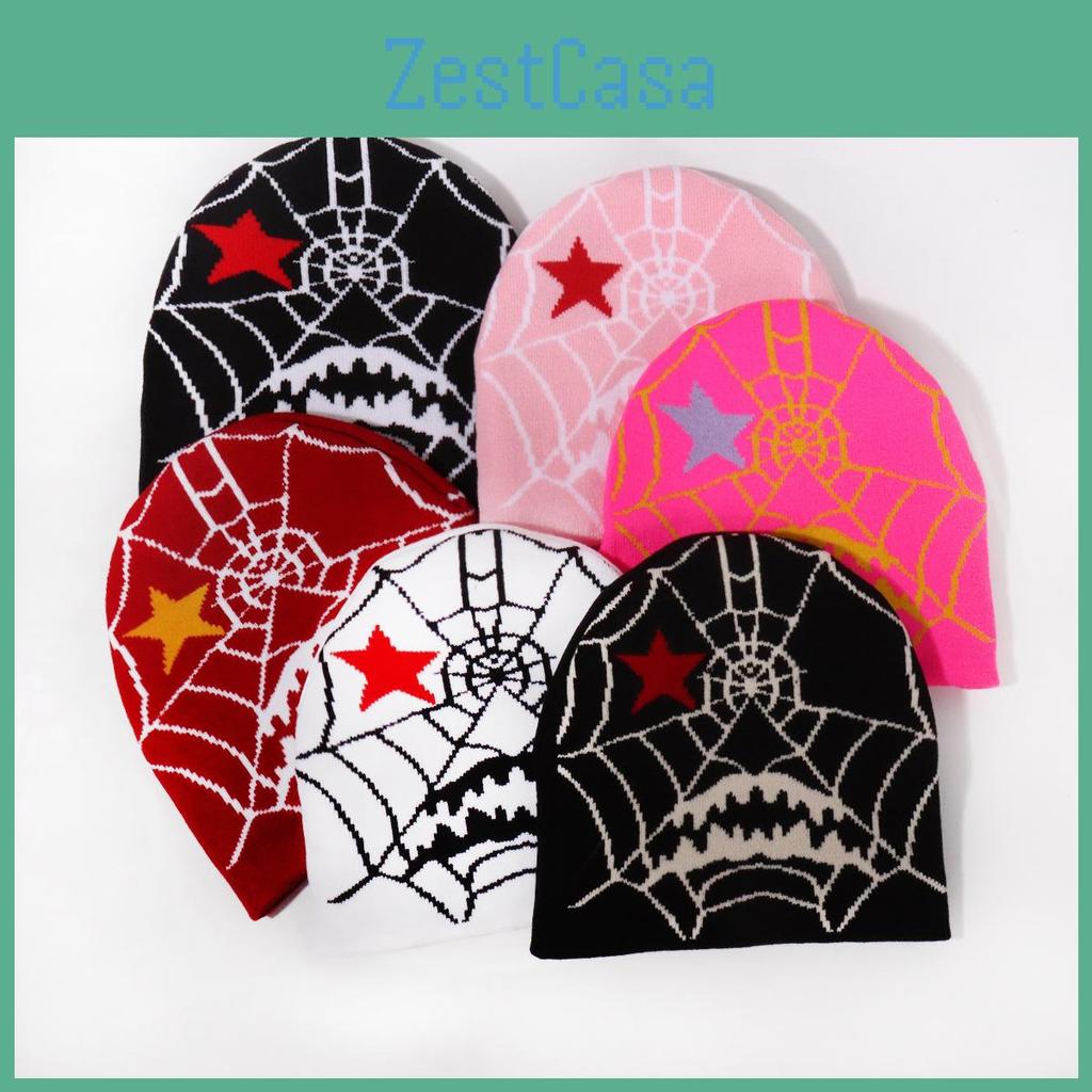 Knit Hat With Spider Web Pattern For Streetwear And Winter Warmth