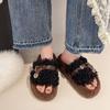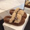 Plüschpantoffeln mit dicker Sohle für Damenbekleidung, neue Herbst- und Wintermode, Teddy-Rollen, flauschige Ein-Wort-Baumwollpantoffeln