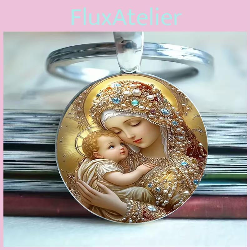 Gesegnete Jungfrau Maria Aluminium Runder Schlüsselanhänger Geschenk Für Religiöse Schmucksammler