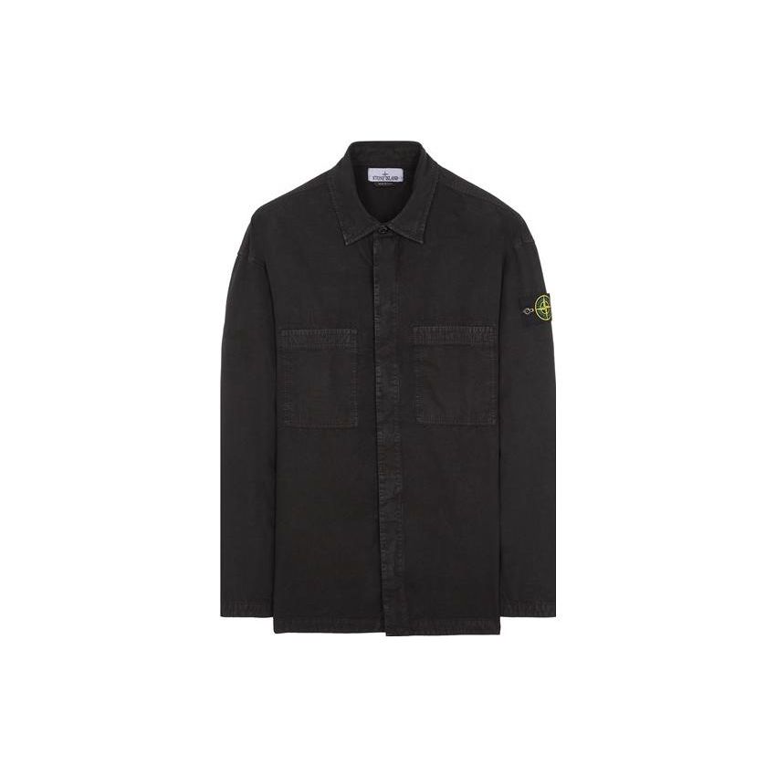 Stone Island Solid Color Polo Collar Long Sleeve Shirt Men shirts Black 7915112WN-V0129