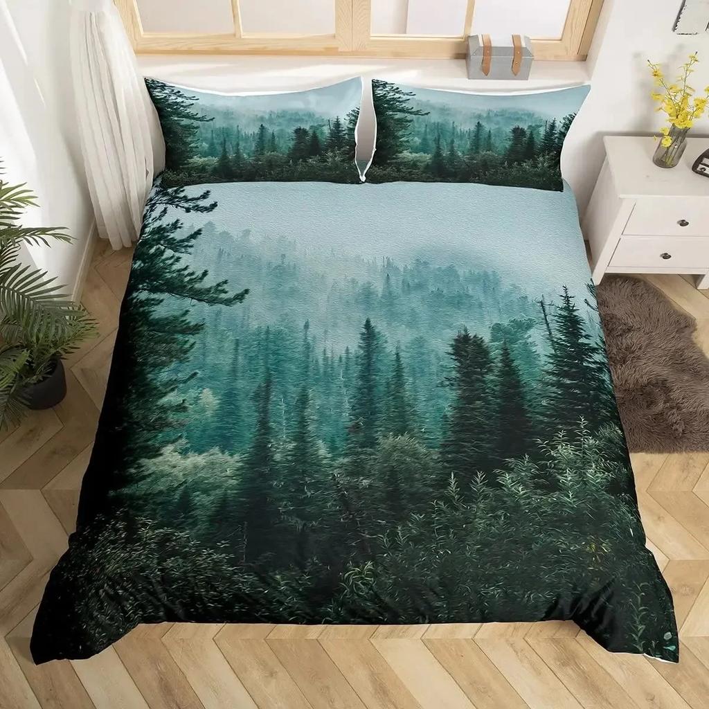 Smoky Mountain Kiefernwälder Grau Baum Naturlandschaft Kunst Bequemer Bettbezug Bettdecke Kissenbezug Bettwäscheset Kinderzimmer