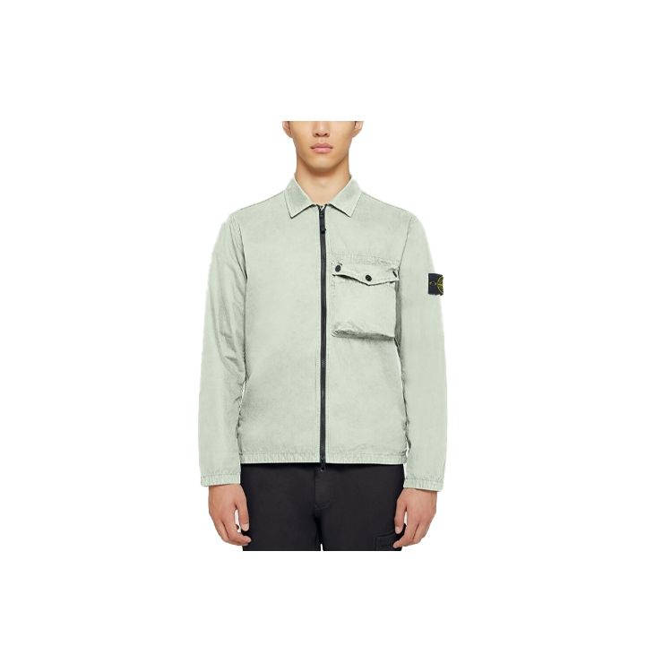 Stone Island Ss21 Solid Color Single Pocket Logo Badge Casual Jacket Men jackets Light-Green 7415117WN-V0152