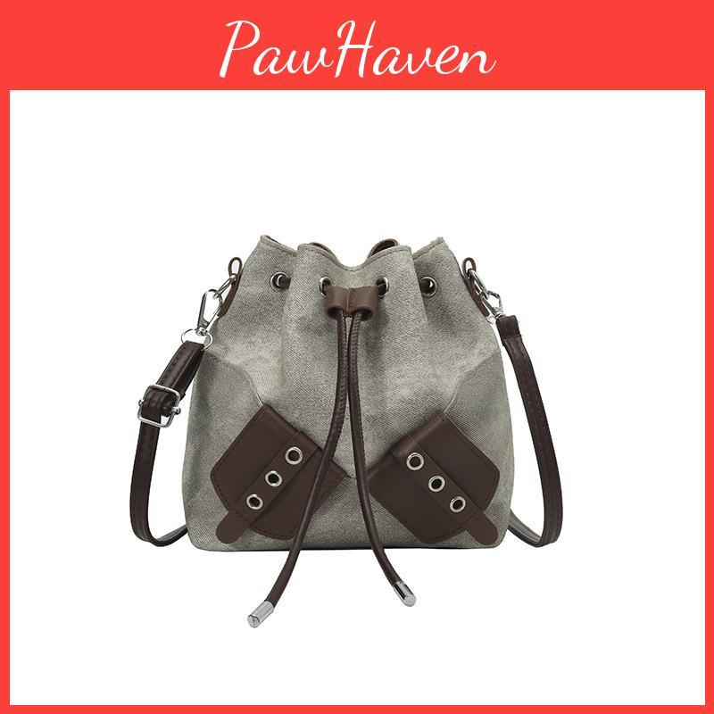 Fashion Splicing Design Drawstring Women Shoulder Bag For Casual Outings