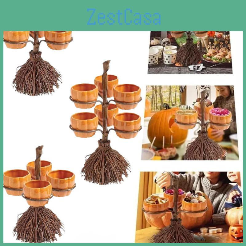 Festliches Harz-Kürbisbecher- und Besen-Bastelset für Halloween-Partys und saisonale Wohnakzente