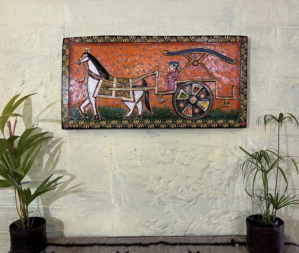 Handmade Indian Horse Wall Art: Traditional Wooden Home Decor (36x18)