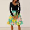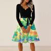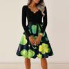 Damen Casual Mode V-Ausschnitt Langarm Bedruckt Party Vintage Lange Kleider