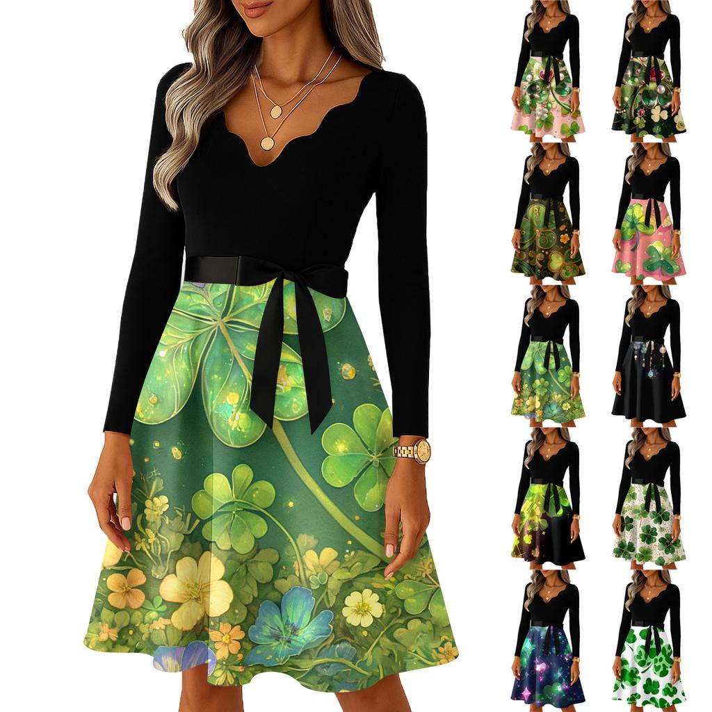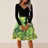 Damen Casual Mode V-Ausschnitt Langarm Bedruckt Party Vintage Lange Kleider