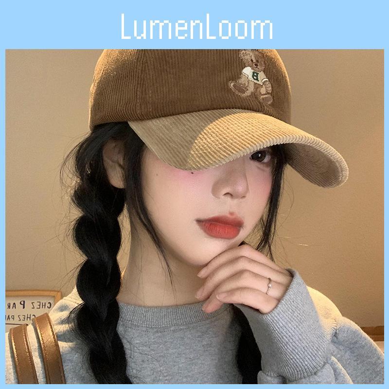 Adorable Corduroy Bear Embroidery Baseball Cap For Women Casual Fall Winter Style
