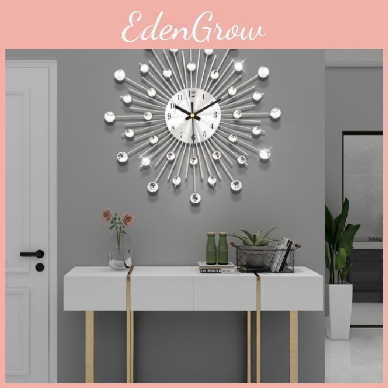 Modern Metal Jeweled Wall Clock With Quartz Movement For Living Room And Bedroom Decor