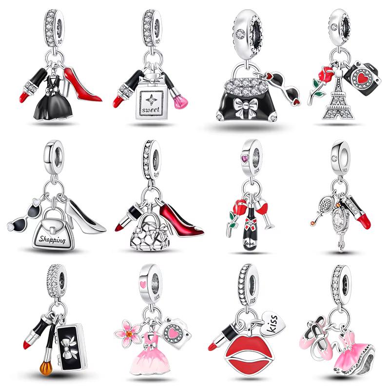 100% Kupfer Mode High Heels Lippenstift Kamera Life Serie Charms Perlen Passend für Qikaola Original Armbänder DIY Schmuck