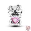 Real Copper Pink Rabbit Cat Dog Animal Charms Beads Fit Qikaola Original Bracelets Diy Birthday Jewelry Making