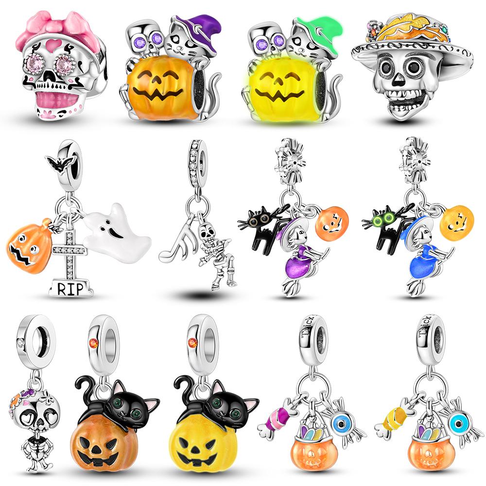 Copper Plated Halloween Charms Pumpkin Skull Witch Beads Fit Original Bracelet Diy Pendant Dangle Women Fine Jewelry