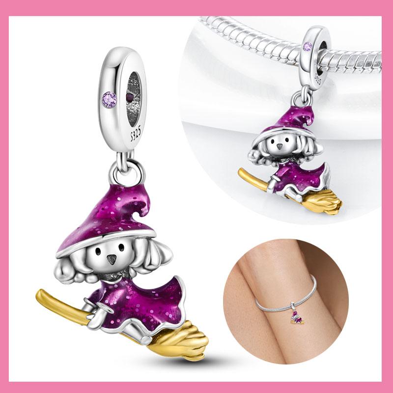 Kupfer Lila Magischer Besen Halloween Charm Anhänger Perlen Passen Original Armband Für Frauen Valentinstag Schmuck Geschenke
