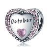 Original Kupfer Blaues Herz Zirkon Zwölf Tierkreiszeichen Monate Blumen Charms Perlen Passend Armband Frauen Schmuck DIY Fein Geschenk