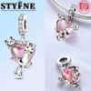 Kupferrosa Herz Niedliche Haustier Katze Charms Perlen Passen Original Armband Halskette Echtschmuck Frauen DIY Geschenke